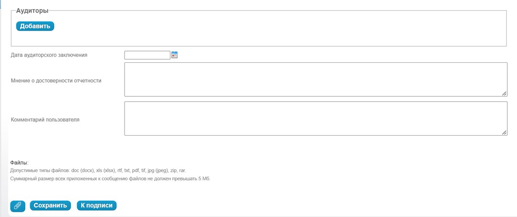 - Выполнить сохранение и использовать электронную подпись для подтверждения размещения аудиторского заключения.