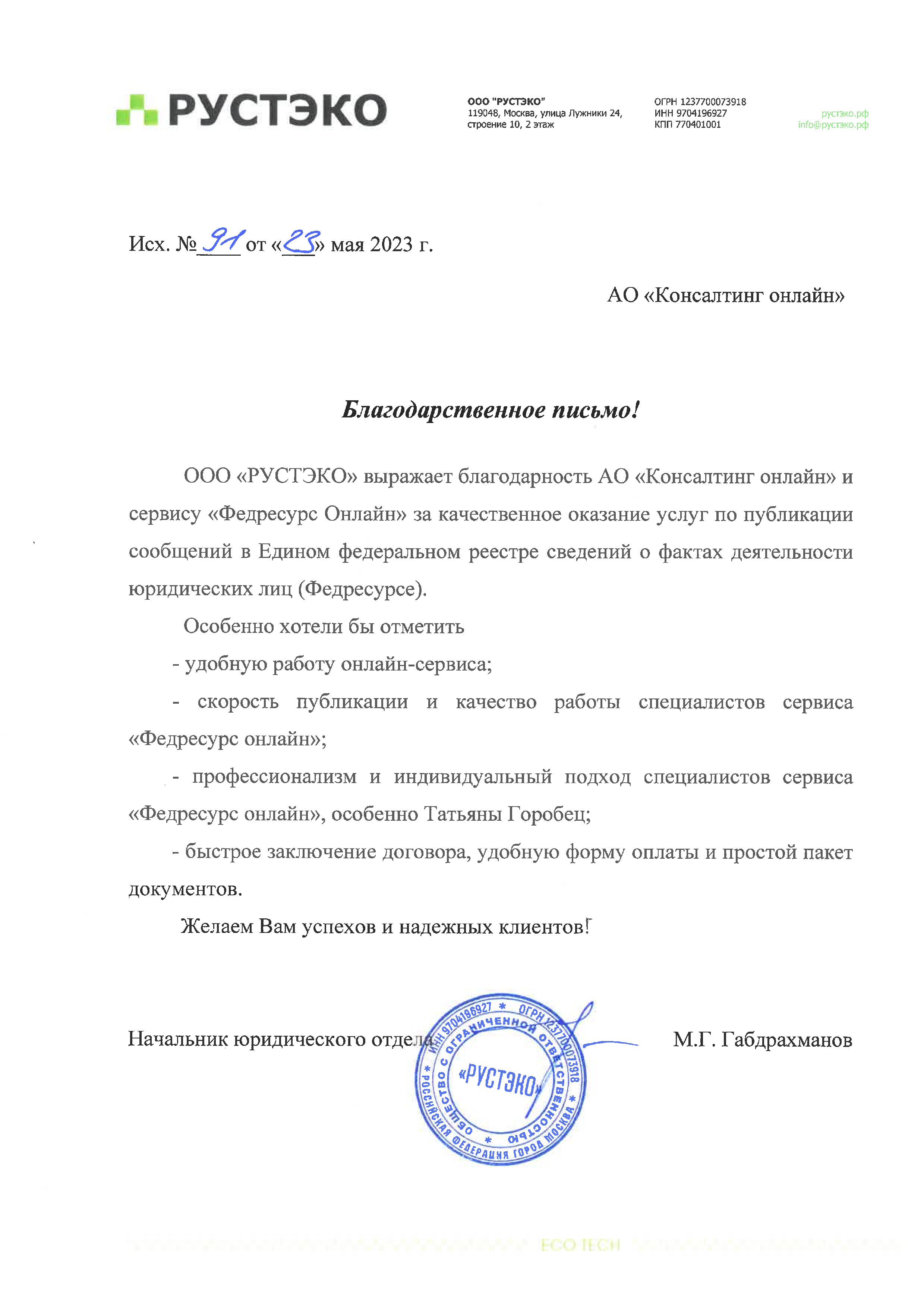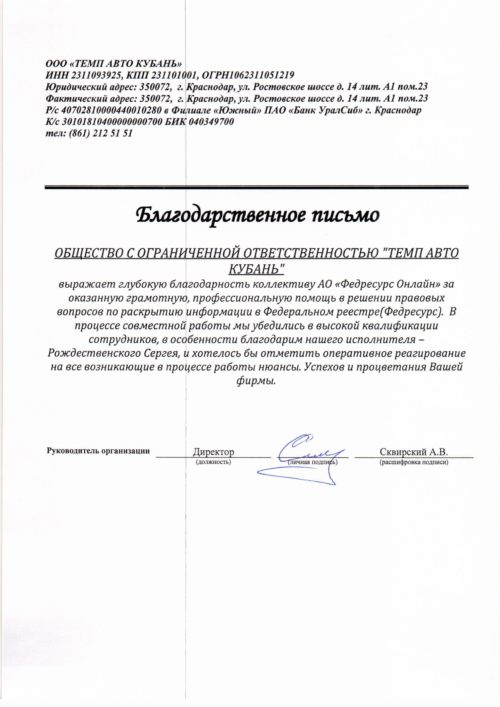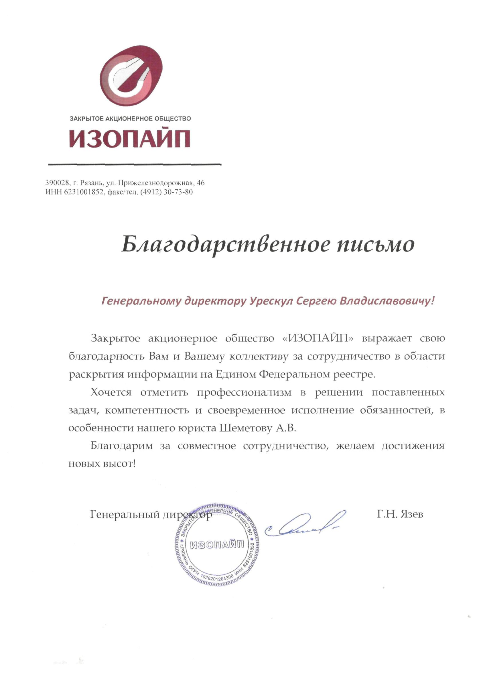 Благодарности от наших клиентов