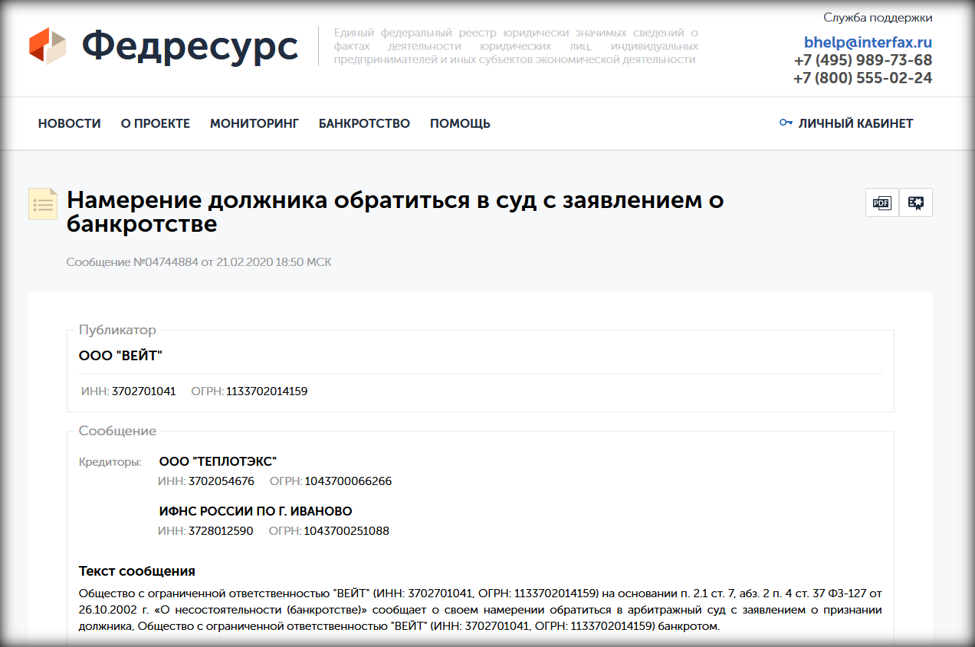 Федресурс банкротство – уведомление должника